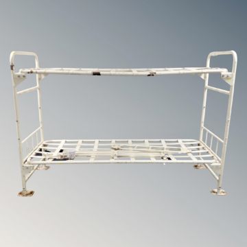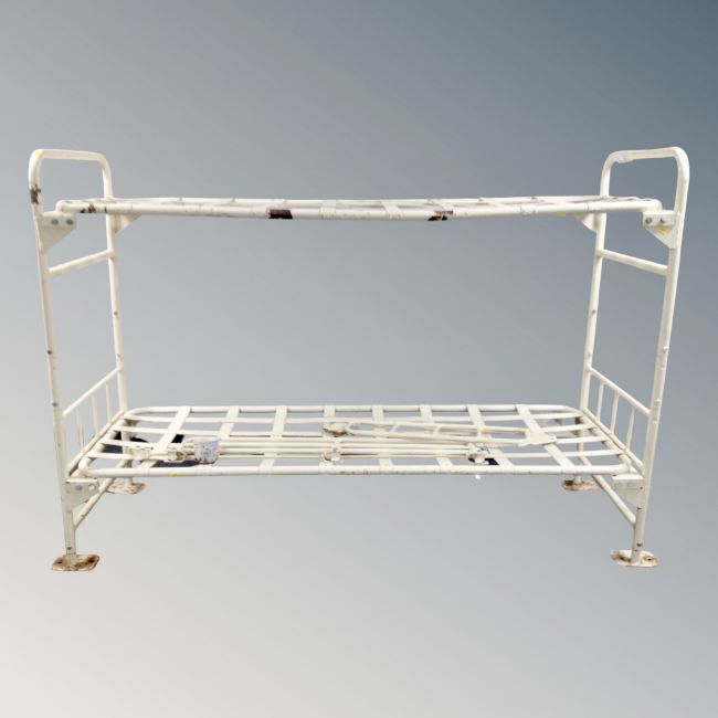 A set of metal prison bunk beds