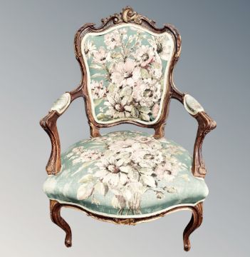 A French salon armchair in floral upholstery