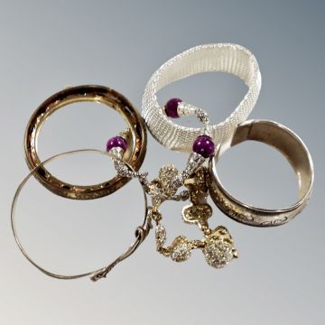 A white metal mesh bracelet, bangle, skull bracelet etc