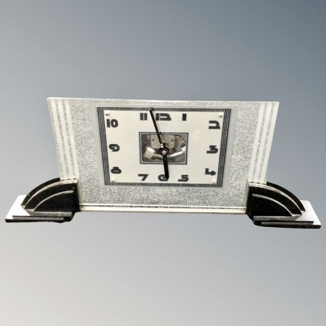 An Ato glass mantel timepiece, width 54 cm