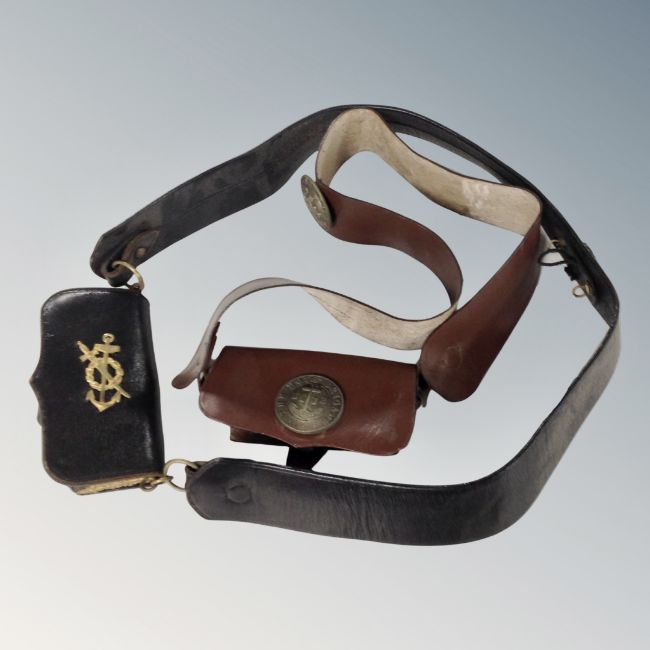 A black leather Corps of Commissionaire's belt and a Boy's Brigade brown leather belt