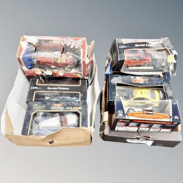 Two boxes of boxed die cast cars : Burago, Maisto etc