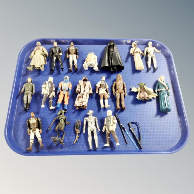 A group of vintage Star Wars toys : Millennium Falcon, Snow Speeder etc together with a quantity of Star Wars figurines