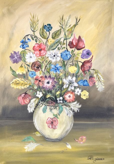 Continental school : Still life of flowers in a vase, oil on canvas, 69cm by 49cm