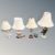 A brass oil lamp with opaque glass shade and four contemporary table lamps