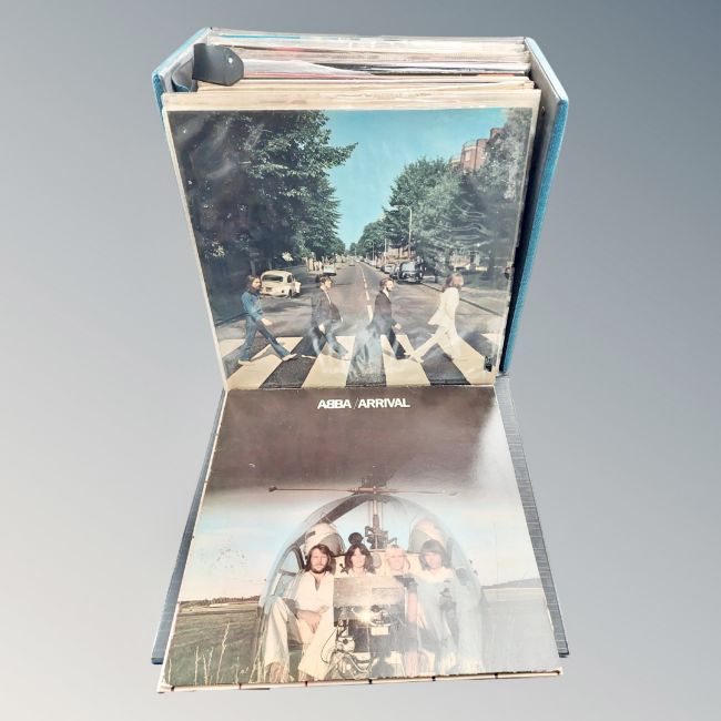 A case of vinyl records including ABBA, Boney M, The Beatles, Simon & Garfunkel, Lindisfarne etc