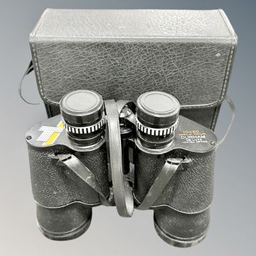 A set of Durham De Luxe 10 x 50 field glasses in case