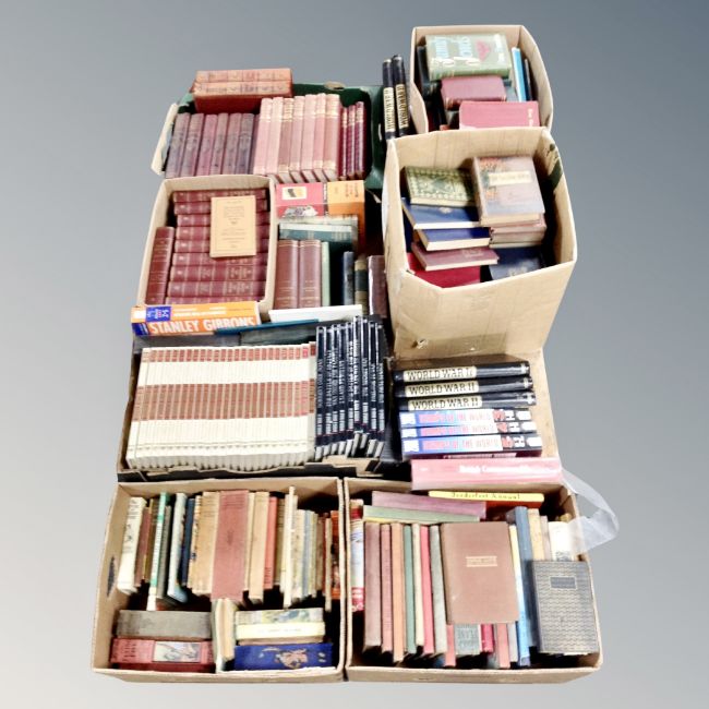 A pallet of volumes : Encyclopedia, WWII, stamp catalogues, history etc