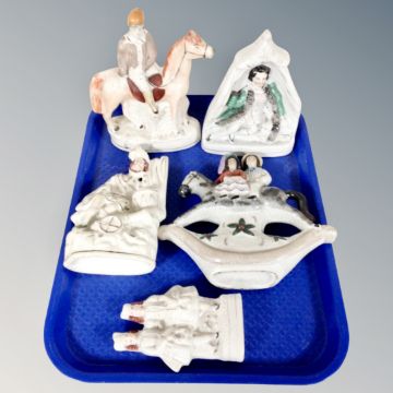 Five 19th century Staffordshire figures.*Provenence : Property of the Earl of Durham, Lambton Castle, County Durham.