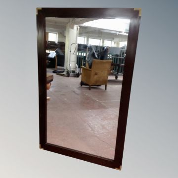 A brass-cornered rectangular mirror, 128cm by 80cm