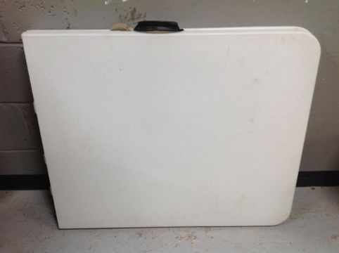 A moulded plastic folding trestle table, length 180 cm