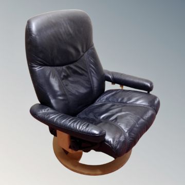 A Stressless Ekornes swivel relaxer armchair in black leather