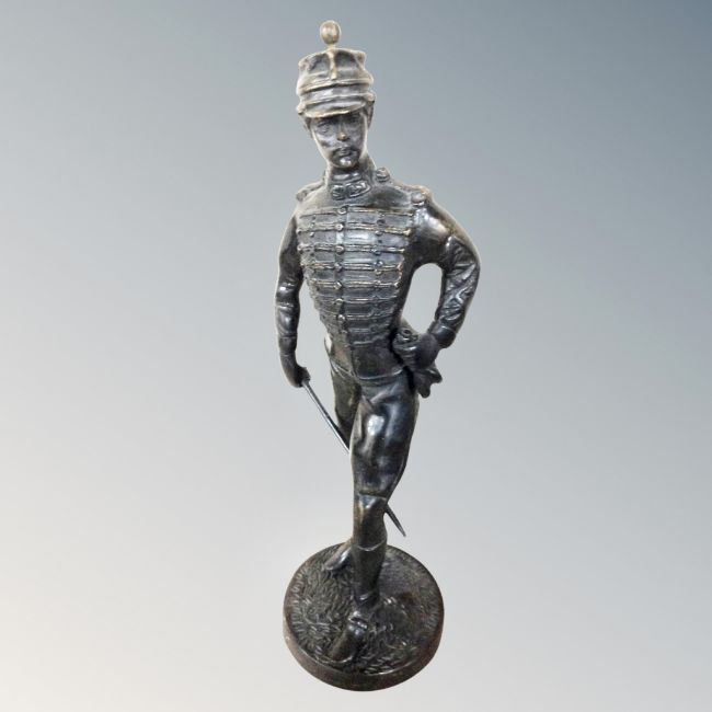 A contemporary patinated metal figure of a military officer, height 37 cm