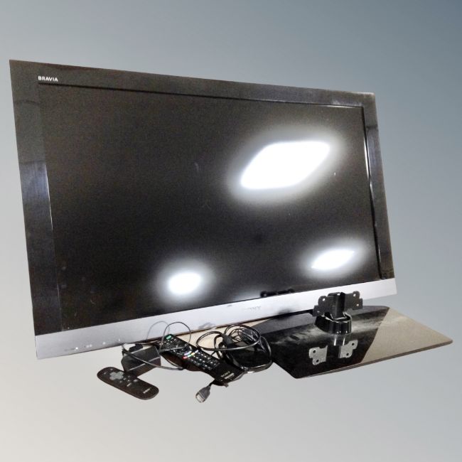 A Sony Bravia 37 inch LCD TV with lead and remote, NOW TV box with remote