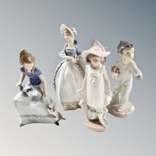 A Nao figure of a girl with parasol and three further figures of children (4)