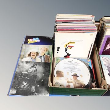 Two boxes of vinyl records : LP and singles, The Beatles, easy listening, Simon & Garfunkel, The Who etc