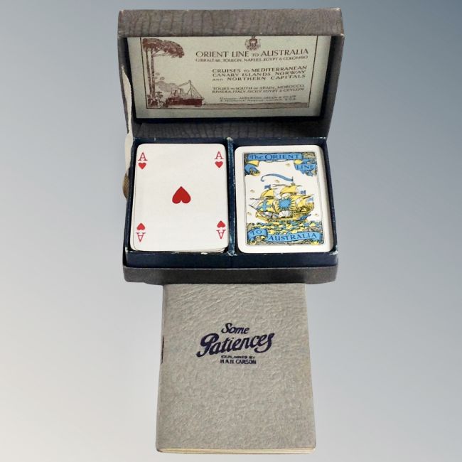 An Orient Line to Australia playing cards in box and a further pair of Kirschner playing cards