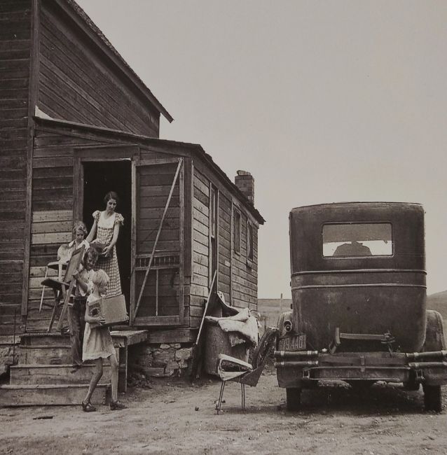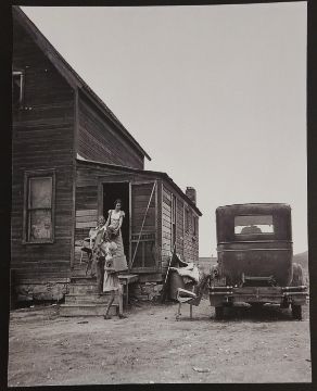 Photographer: Arthur Rothstein - resettlement photo of family during the era of the Great Pains in 1936. High winds and chocking dust swept across the USA. The back of the photograph reads 'Arthur Rothstein photograph'. From the collection of Grace Rothstein. 35x28