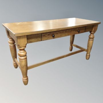 A contemporary refectory office table with pull out drawer slide in oak finish