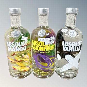 Three x Absolut Vodka, Passion Fruit, Vanilla & Mango, each bottle 70 cl. (3)