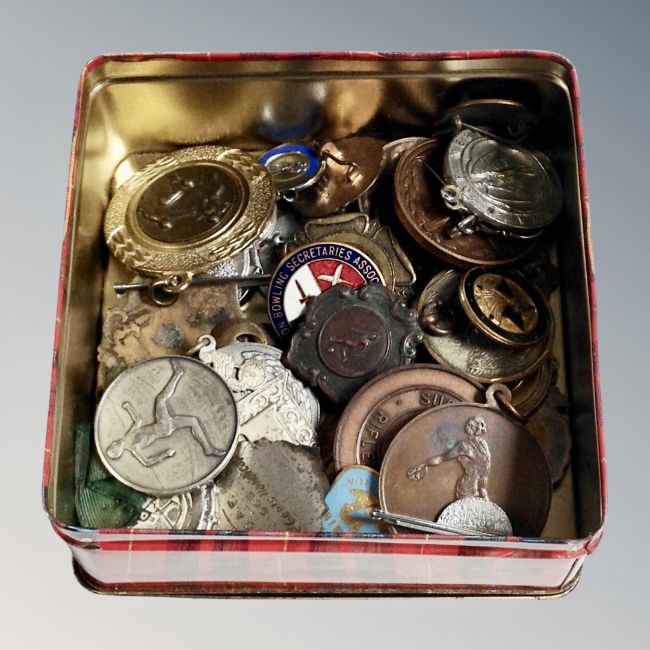 A box of sporting medals