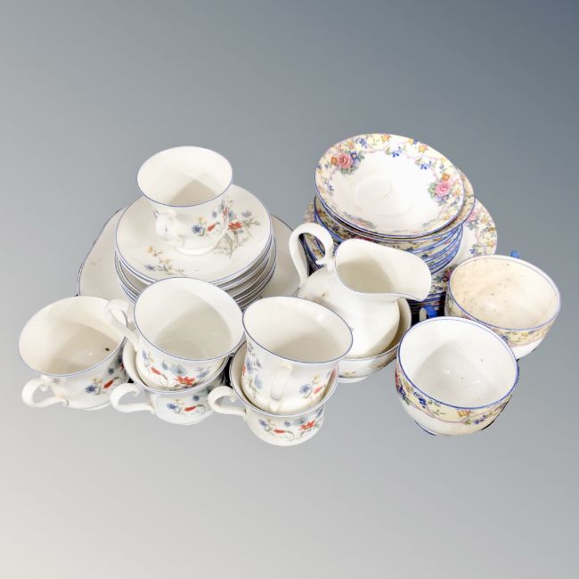 A tray of eighteen pieces of Royal Albert Summer Breeze tea china together with a further part antique Aynsley tea service