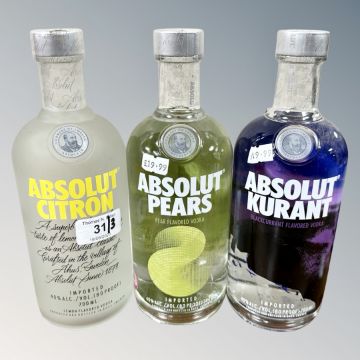 Three x Absolut Vodka, Citron, Pear & Kurrant, each bottle 70 cl. (3)
