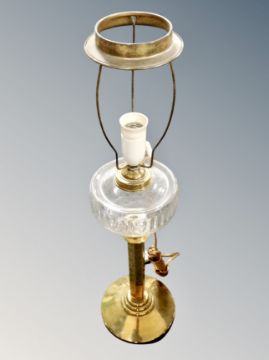 A converted brass oil lamp.