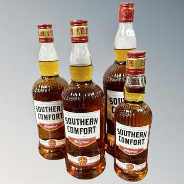 Four x Southern Comfort Original : 1 x 1 litre bottle, 2 x 70 cl bottles & 1 x 35 cl bottle. (4)