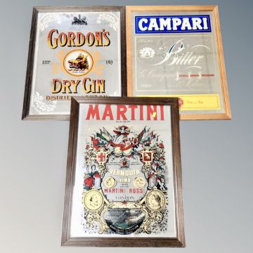 Three advertising mirrors : Gordon's Dry Gin, Martini, Campari