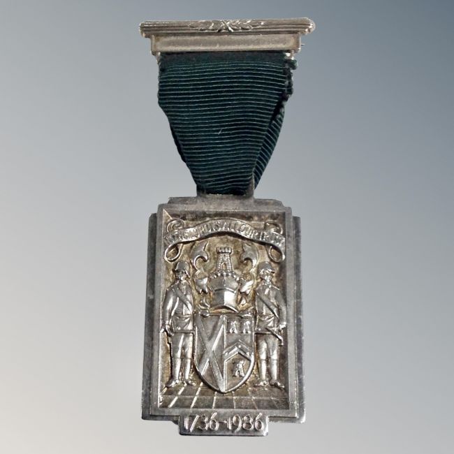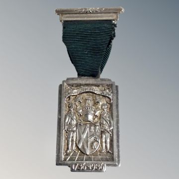 A silver medal the First Grand Mason of Scotland, 1736, on ribbon
