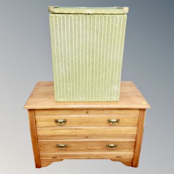 An Edwardian satinwood two drawer low chest together with a loom linen box