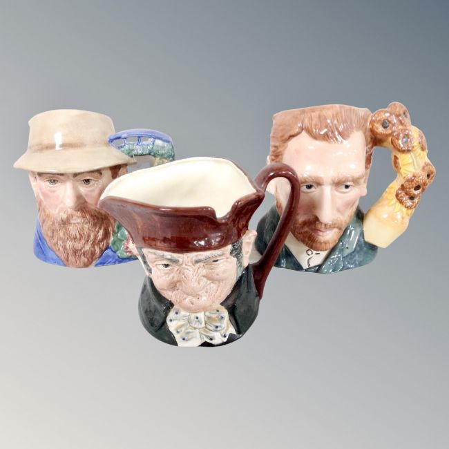 Three Royal Doulton character jugs : Vincent Van Gogh, Old Charley, Claude Monet