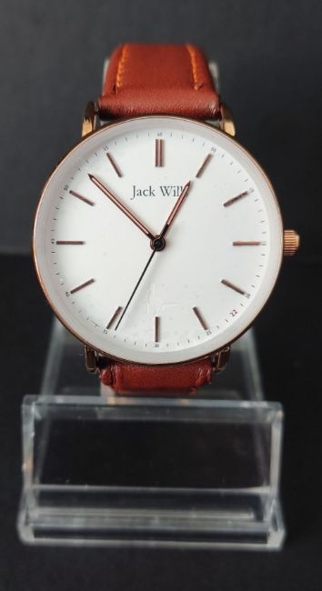 Brand new Jack Wills watch. Model: JH018FLWH. Brown leather strap. With face film and Back film. 36mm face. Rose gold plated metal case, and rose gold hands and markers. Battery included.