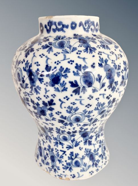 A 19th century Islamic blue and white earthenware vase, height 23 cm