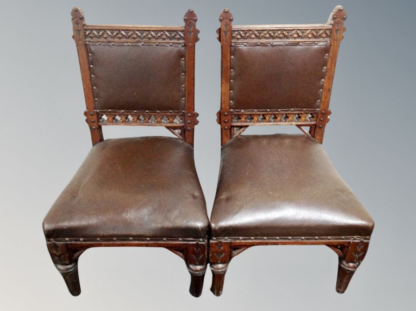A pair of Edwardian oak low chairs
