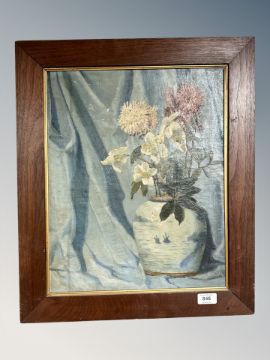 Danish School : Still life with flowers in Delft vase, oil on canvas, 43 cm x 35 cm