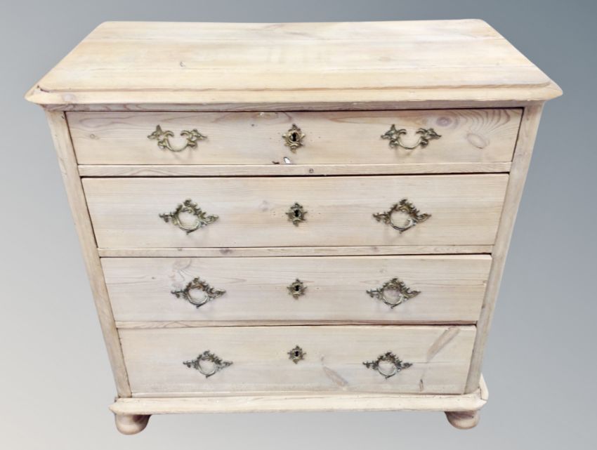 A 19th century pine chest of four drawers, width 90 cm
