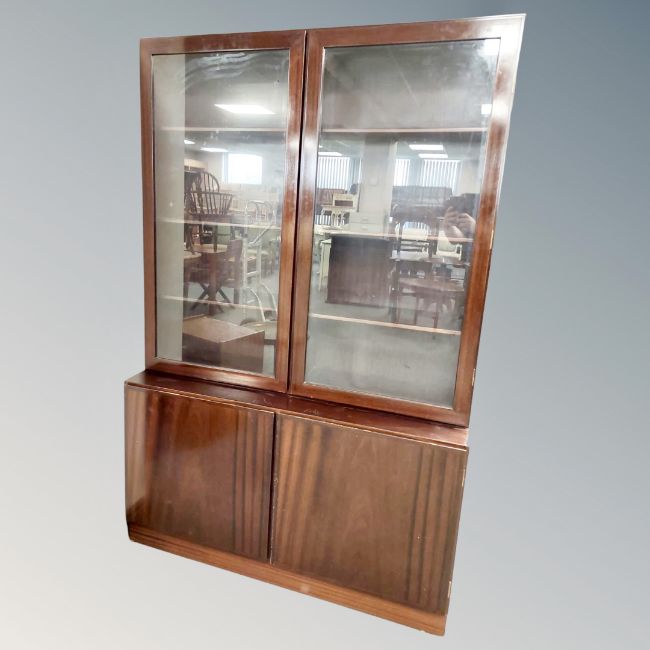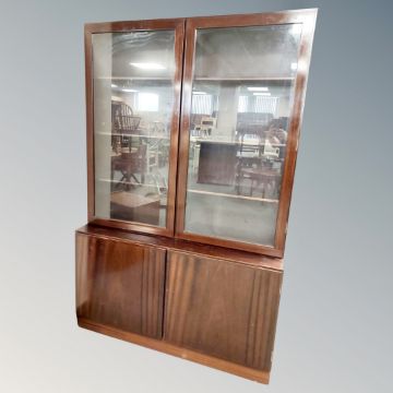 A continental mahogany glazed bookcase fitted with cupboards, width 120 cm
