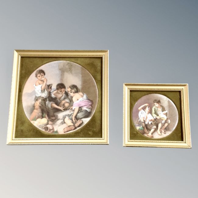 Two framed Staffordshire ceramic circular plaques from the Murillo Series