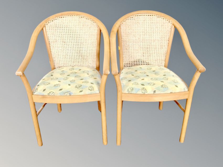 A pair of cane backed beech armchairs