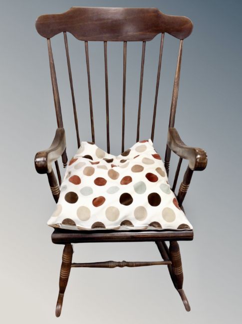 An elm rocking chair with cushion
