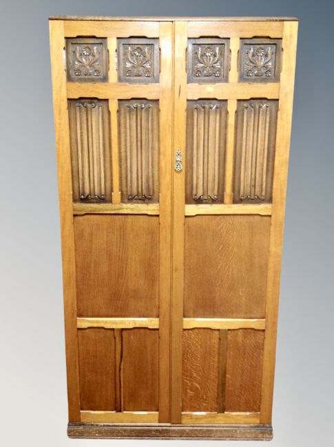 A 1920's oak linen fold wardrobe