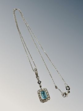 An 18ct white gold necklace set with an aquamarine pendant 4.9g gross.