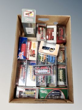 Eighteen die cast buses to include Corgi, The Original Omnibus, Oxford Omnibus, Atlas, all boxed or cased