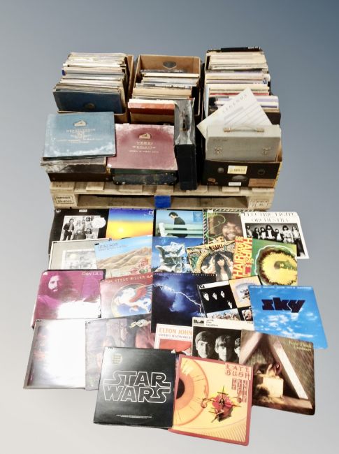 A pallet of vinyl records, classical, 78's and boxed sets, world music, The Beatles, Kate Bush, easy listening etc