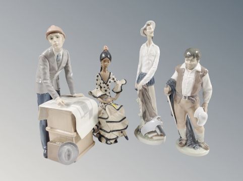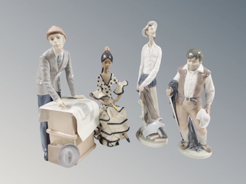 Four Lladro figures; 2170 seated Andalucian dancer, 6633 Sancho Pancha, Don Quixote and The Architect (4)