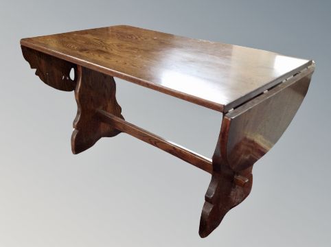 An oak drop leaf refectory dining table and four wheelback chairs