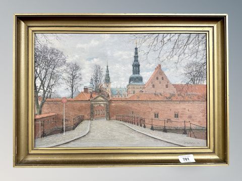 Danish School : Red bricked building, oil on canvas , 44 cm x 29 cm