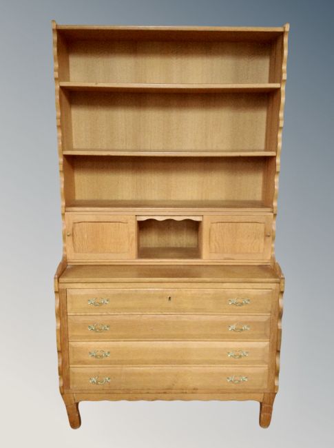 A blonde oak bookcase, fitted drawer beneath, width 101 cm